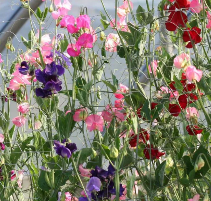 Large flowers on long stems. This early flowering variety can withstand heat and drought unusually well. Mix of deep rose, rose pink, salmon, scarlet, white, lavender, medium blue and deep burgundy produces well into the summer. Attracts hummingbirds. Beautiful scent!